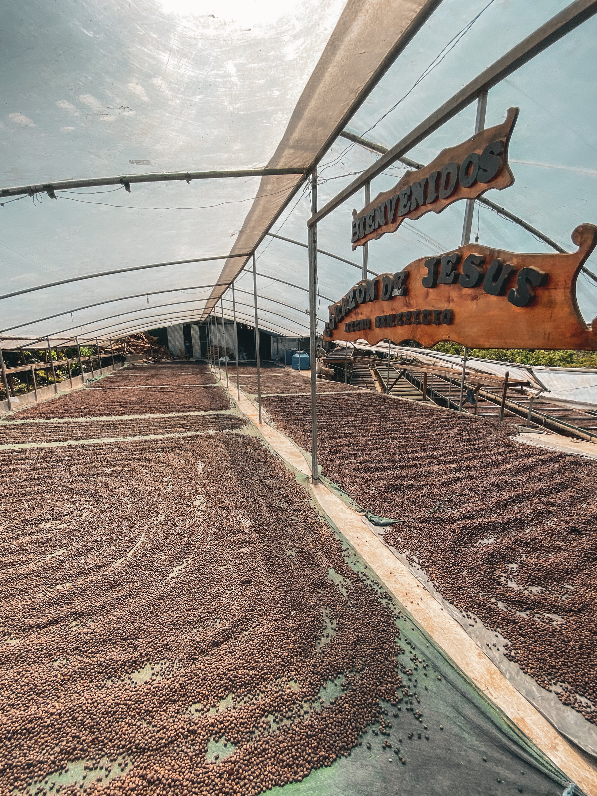 Corazón de Jesús processes coffee from all five family farms using a plethora of methods including the more traditional - washed, honey, natural, up to the higher intervention techniques - anoxic ("anaerobic"), and natural reposado/extended fermentation. The facility includes African raised beds with weather protection, climate-controlled fermentation spaces, hermetic tanks, and extensive drying patios. The family has gained a reputation for experimental processing and developing very precise fermentation protocols across their lots, both for individual varieties as well as the individual plots on the farms.