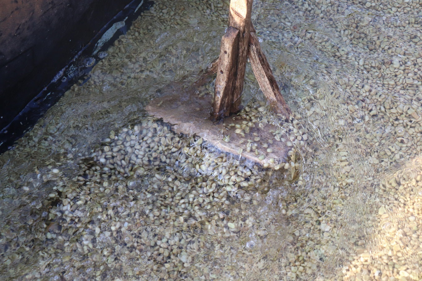 Traditional Washed: Ripe coffees picked and delivered to Gondo, with pre-selection and sorting before pulping. During pulping, coffee is density sorted down channels into holding tanks.